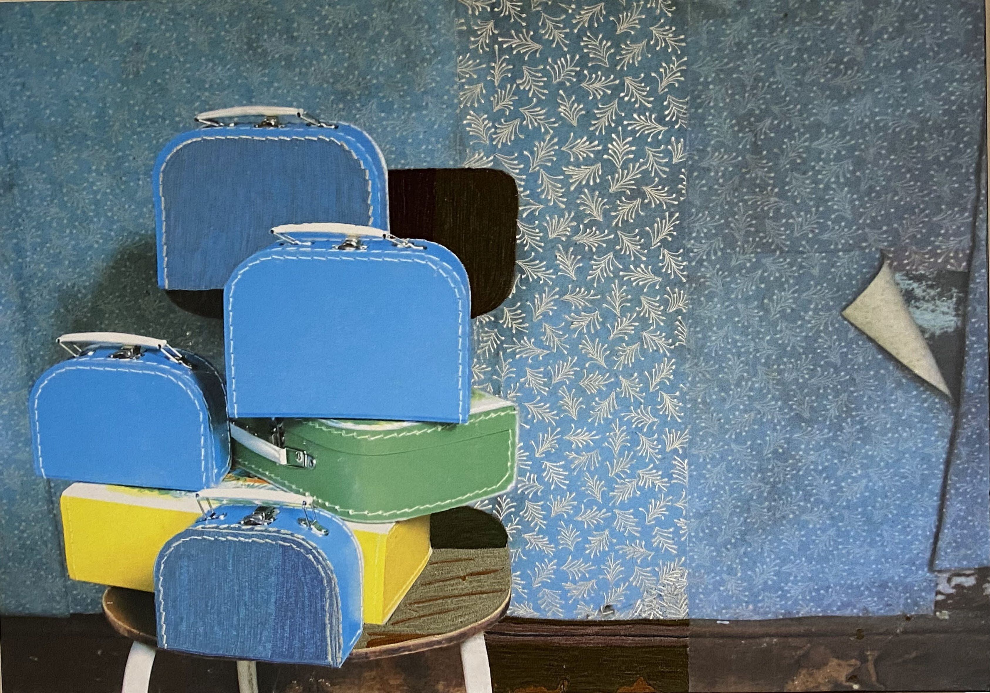 同じモチーフの小さな作品「出発(たびだち)」とは刺繍の箇所なども変えて、大きなサイズの作品は圧巻です。